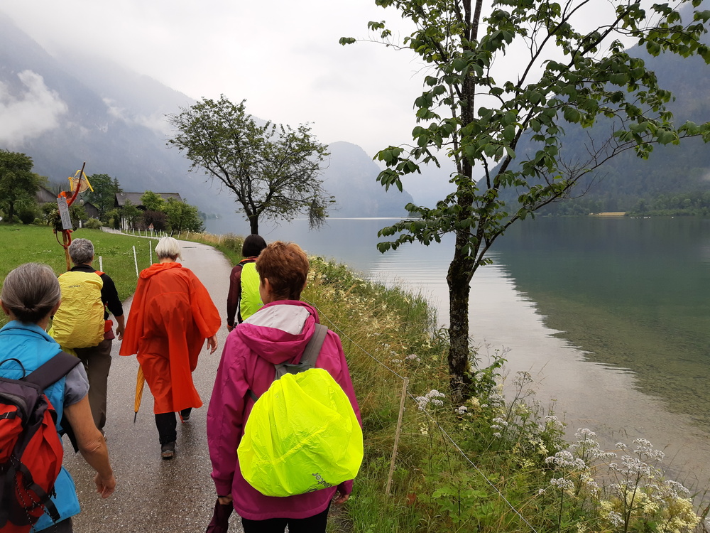 Weiter ging es dem Hallstättersee entlang, wo das Gasthaus Seeraunzn zur Rast einlud. Die Wolken zogen um die Berge und den See und schufen wunderbare Eindrücke als es weiterging nach Obertraun. „Was hörst/riechst/siehst du?“ Veschiedene Impulsfragen, angeleitet von Pastoralassistentin Birgit Thumfart, stärkten die bewusste Wahrnehmung im Hier und Jetzt.