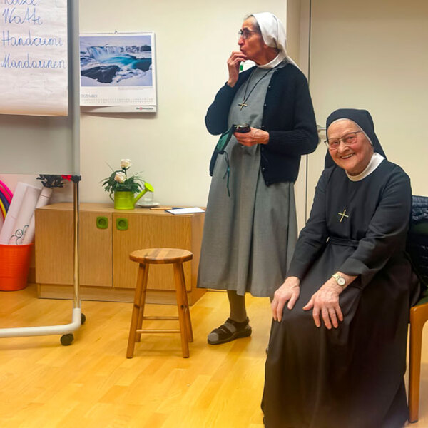 Danach breitete die SelbA-Trainerin ein Europapuzzle mit den Staaten auf, dessen Fertigstellung das gemeinsame Ziel war. Die „Tour de France“ im Sesselkreis zur körperlichen Stärkung der Nonnen beendete das SelbA-Training.
