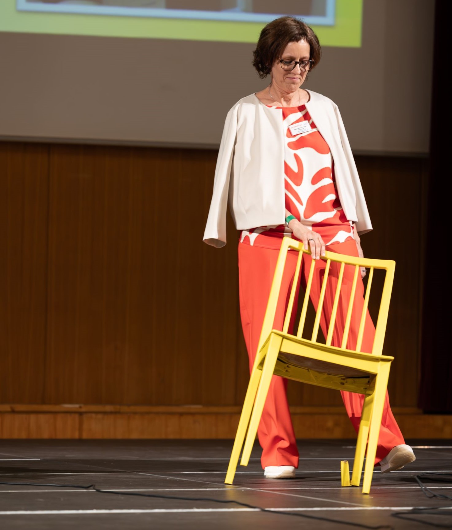 Der gelbe Sessel war eine Idee von Hildegund Staininger. Er stand symbolisch für die drei Säulen des SelbA-Konzepts – Bewegung, Gedächtnistraining und Alltagskompetenz. Sie sagte: "Doch damit man darauf stabil sitzen kann, braucht ein Sessel vier Beine. Die vierte Säule ist die Gemeinschaft". Mit diesem präparierten, gelben Stuhl demonstrierte Barbara Aigner-Reitbauer, was passiert, wenn diese vierte Stütze wegbricht.