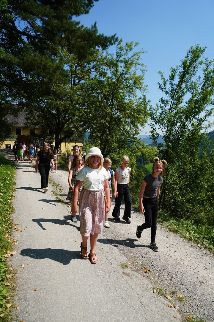Da wir wunderbares Wetter die ganze Woche lang hatten, war der Wandertag mit anschließender Abkühlung im Freibad Laussa eine willkommene Abwechslung. Einen kurzen „Wolkenbruch“ alias eine feine Wasserschlacht hatten wir am Donnerstag. Die im Anschluss stattfindende Messe, welche von Herrn Padinger gestaltet wurde, war im Ambiente wunderbar zu genießen.