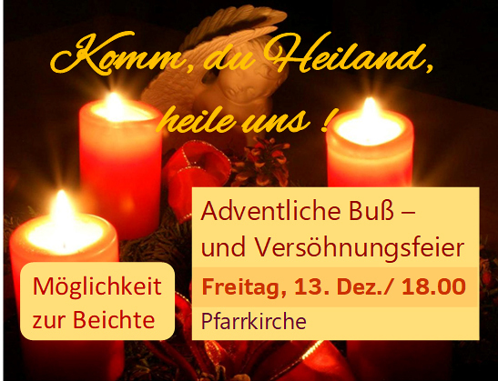 Adventlichen Buß- und Versöhnungsfeier am Freitag, 13. Dezember um 18.00 Uhr.